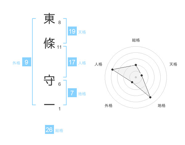 東條 守一さんの総格は26画の2点!
