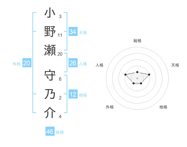 小野瀬 守乃介さんを姓名の画数から五運を鑑定