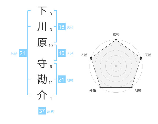 下川原 守勘介さんを姓名の画数から五運を鑑定