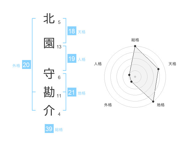 北園 守勘介さんを姓名の画数から五運を鑑定