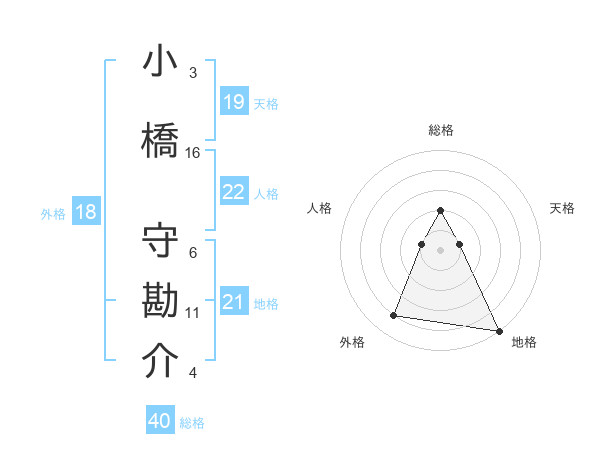 小橋 守勘介さんを姓名の画数から五運を鑑定