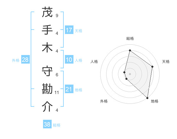茂手木 守勘介さんを姓名の画数から五運を鑑定
