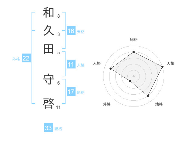 和久田 守啓さんを姓名の画数から五運を鑑定