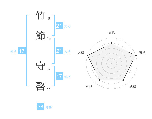 竹節 守啓さんを姓名の画数から五運を鑑定