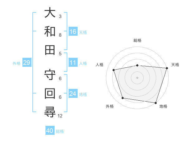 大和田 守回尋さんを姓名の画数から五運を鑑定
