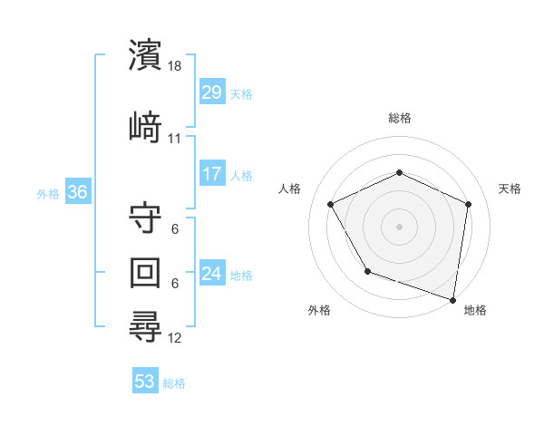 濱﨑 守回尋さんの総格は53画の3点!