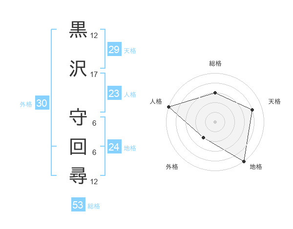 黒沢 守回尋さんを姓名の画数から五運を鑑定