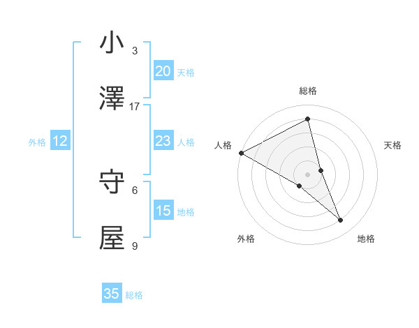 小澤 守屋さんの人格は23画の5点!