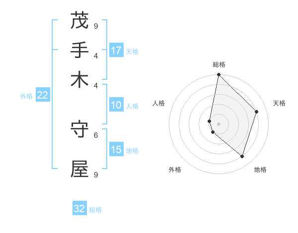茂手木 守屋さんの総格は32画の5点!