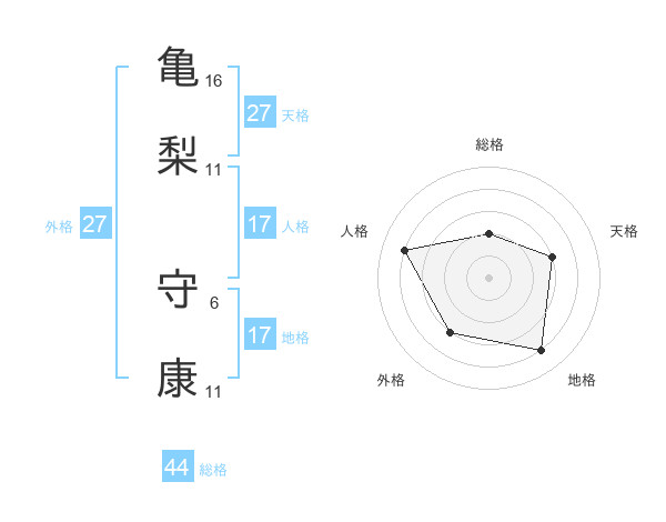 亀梨 守康さんの総格は44画の2点!