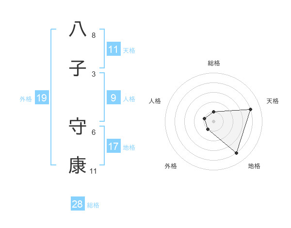 八子 守康さんの天格は11画の4点!