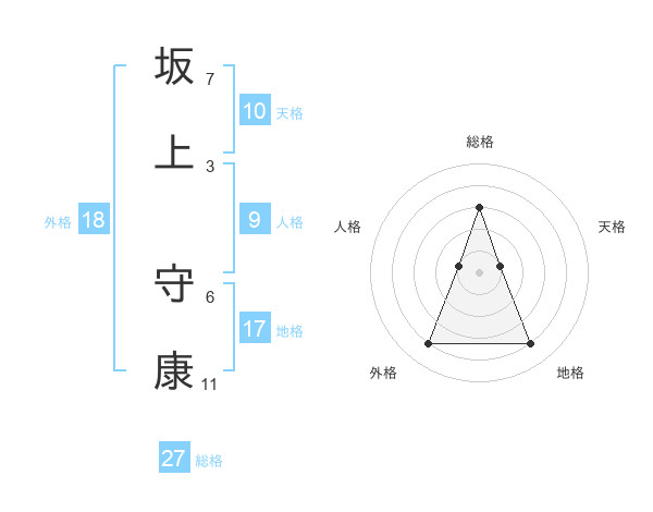 坂上 守康さんの総格は27画の3点!