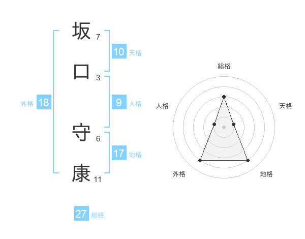 坂口 守康さんの総格は27画の3点!