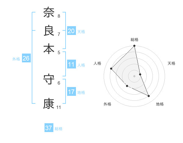 奈良本 守康さんを姓名の画数から五運を鑑定
