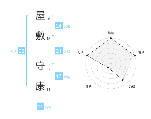 屋敷 守康さんを姓名の画数から五運を鑑定