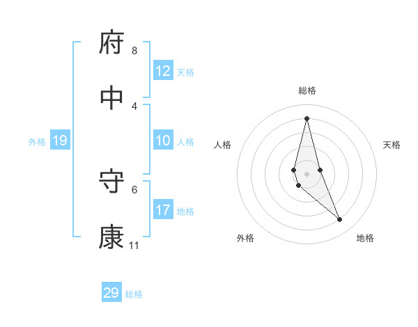 府中 守康さんの総格は29画の4点!