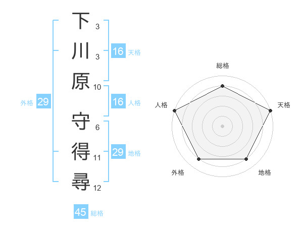 下川原 守得尋さんを姓名の画数から五運を鑑定