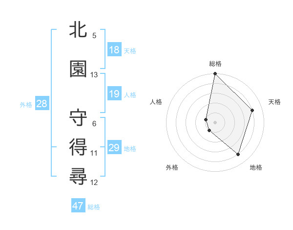 北園 守得尋さんを姓名の画数から五運を鑑定