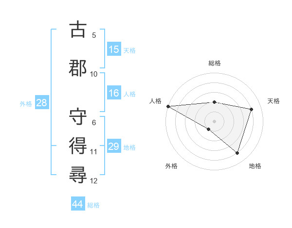 古郡 守得尋さんを姓名の画数から五運を鑑定