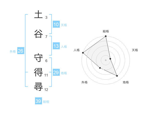 土谷 守得尋さんを姓名の画数から五運を鑑定