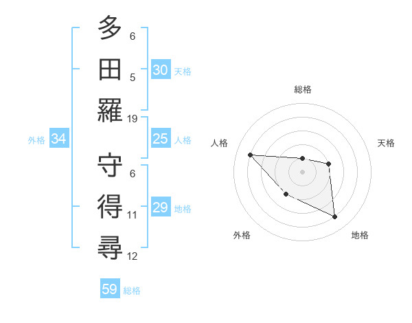 多田羅 守得尋さんを姓名の画数から五運を鑑定