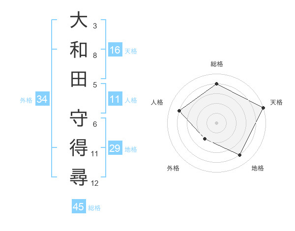 大和田 守得尋さんを姓名の画数から五運を鑑定