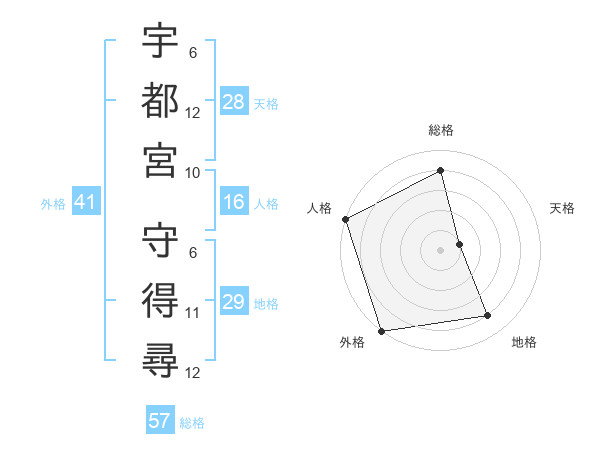 宇都宮 守得尋さんの外格は41画の5点!
