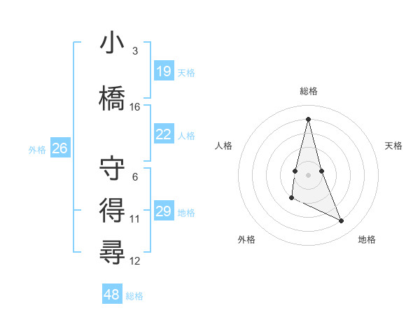 小橋 守得尋さんを姓名の画数から五運を鑑定
