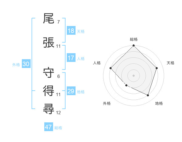尾張 守得尋さんを姓名の画数から五運を鑑定