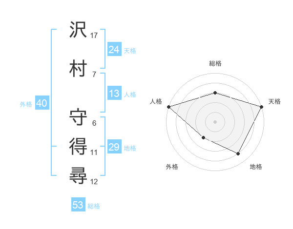 沢村 守得尋さんを姓名の画数から五運を鑑定