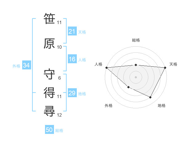 笹原 守得尋さんの天格は21画の5点!