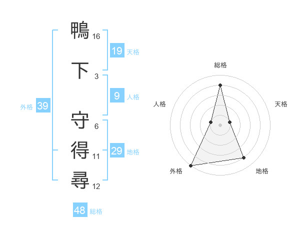 鴨下 守得尋さんの外格は39画の5点!