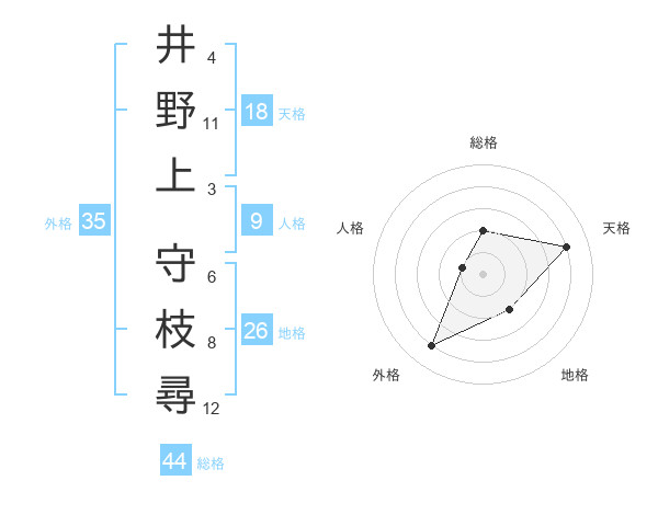 井野上 守枝尋さんを姓名の画数から五運を鑑定
