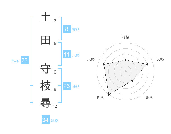 土田 守枝尋さんを姓名の画数から五運を鑑定