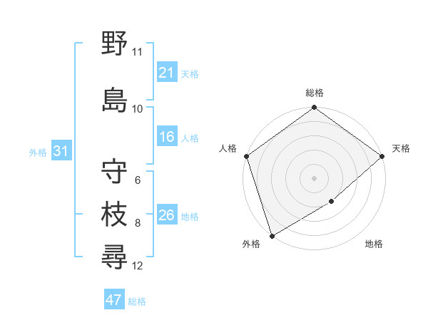 野島 守枝尋さんを姓名の画数から五運を鑑定