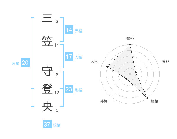 三笠 守登央さんの総格は37画の5点!