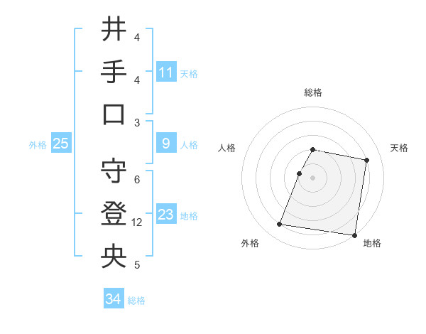 井手口 守登央さんを姓名の画数から五運を鑑定