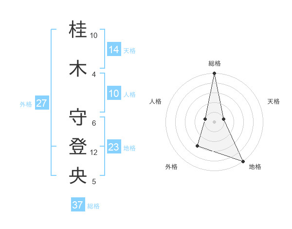 桂木 守登央さんを姓名の画数から五運を鑑定