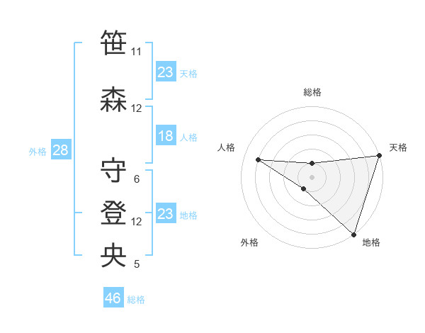 笹森 守登央さんの天格は23画の5点!