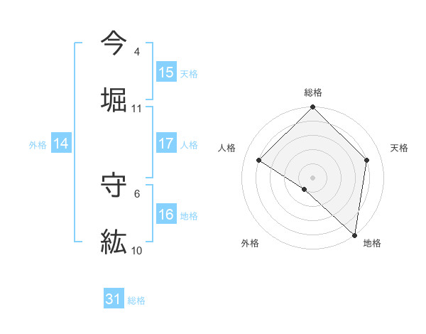 今堀 守紘さんを姓名の画数から五運を鑑定