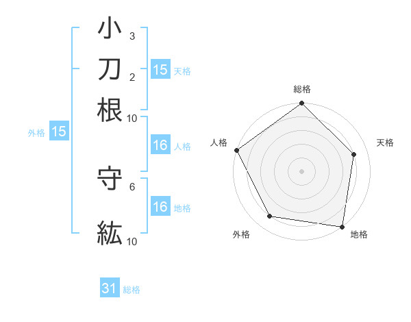 小刀根 守紘さんを姓名の画数から五運を鑑定