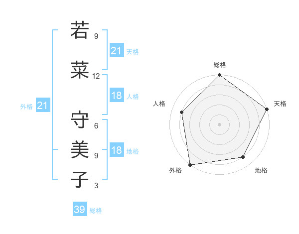 若菜 守美子さんの天格は21画の5点!