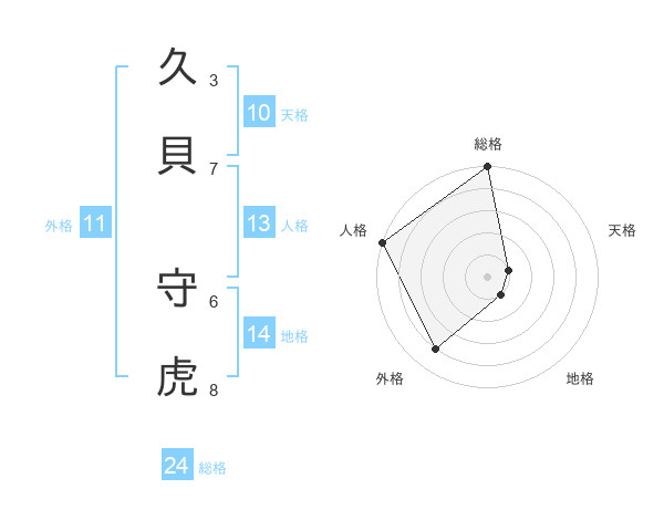 久貝 守虎さんを姓名の画数から五運を鑑定