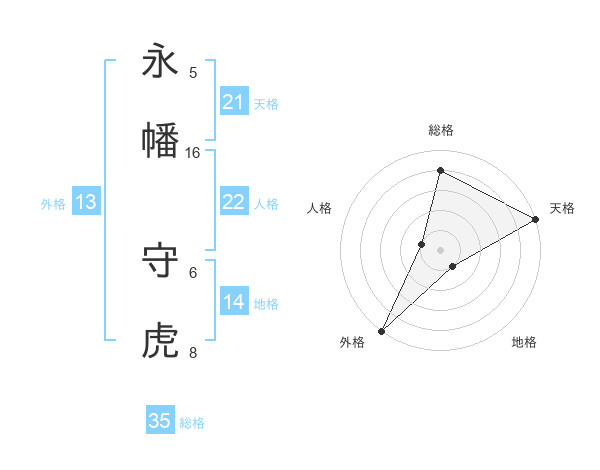 永幡 守虎さんを姓名の画数から五運を鑑定