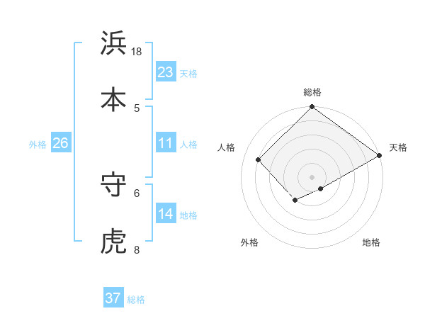 浜本 守虎さんを姓名の画数から五運を鑑定