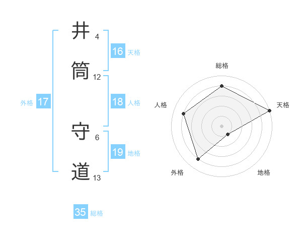 井筒 守道さんの総格は35画の4点!
