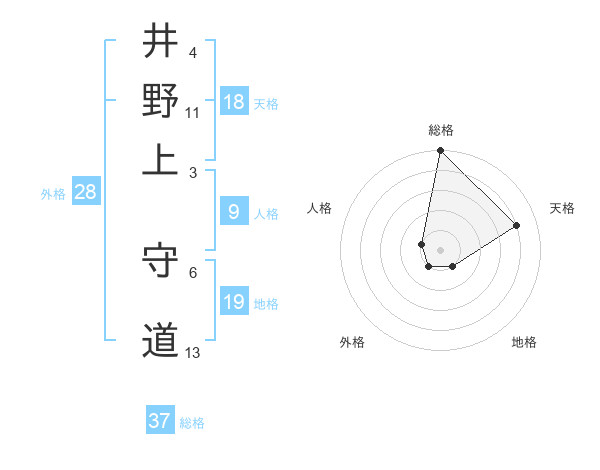 井野上 守道さんの総格は37画の5点