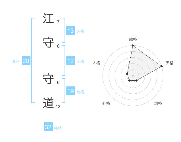 江守 守道さんの天格は13画の5点!