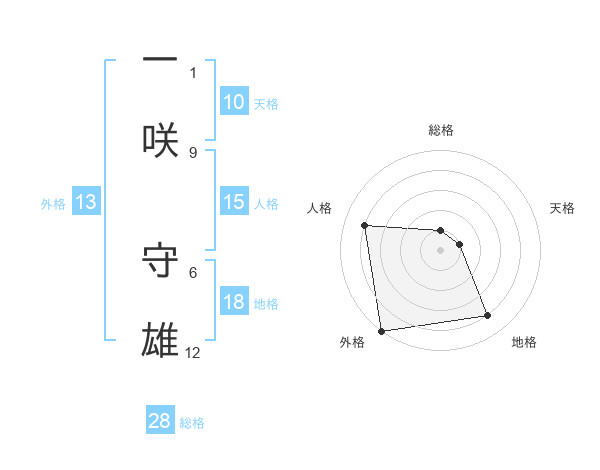 一咲 守雄さんを姓名の画数から五運を鑑定