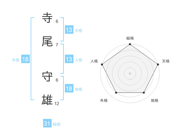 寺尾 守雄さんの総格は31画の5点!